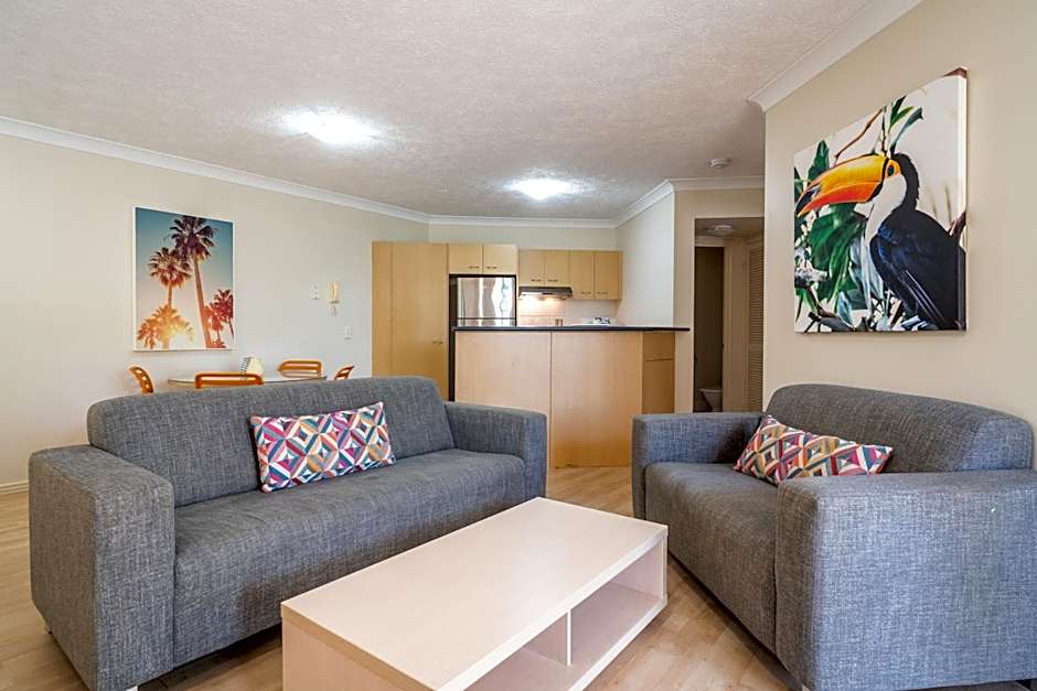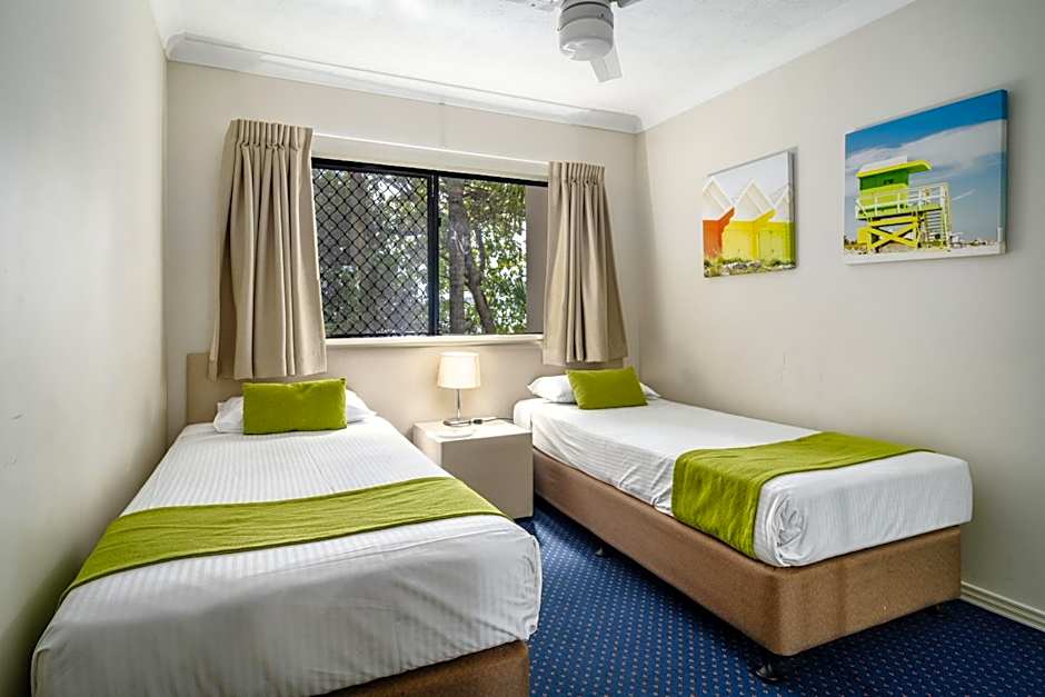 This spacious apartment provides direct access to the resort grounds and offers 2 bathrooms, a fully equipped kitchen and laundry facilities. There are two 40-inch flat-screen TVs, one in the bedroom and one in the living area.